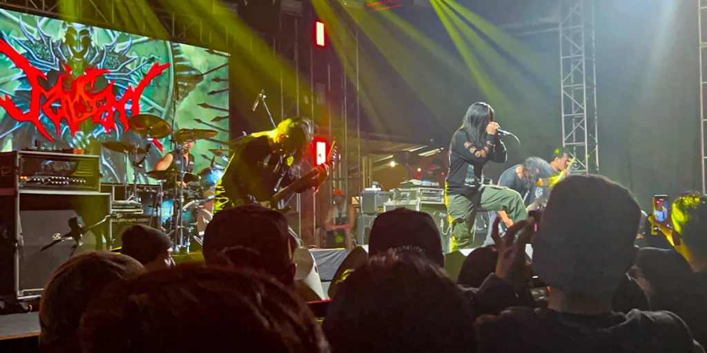 Jasad, dengan vocalist barunya Popo Puji yang tak tergoyahkan, sekali lagi membuktikan mengapa mereka adalah ujung tombak. Blast beat yang presisi berpadu dengan geraman yang membelah langit Bandung. Begitu pula dengan Forgotten; lirik-lirik tajam Addy Gembel seolah menjadi himne yang diteriakkan serentak oleh ribuan orang tanpa komando.